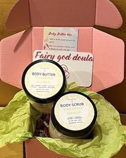 We believe all mothers should be dedicated in a self-care maintenance routine during pregnancy. Our body butters and scrubs deliver a pampering experience for soft skin. Our body butters and scrubs are Made with Shea/jojoba/coconut oils.